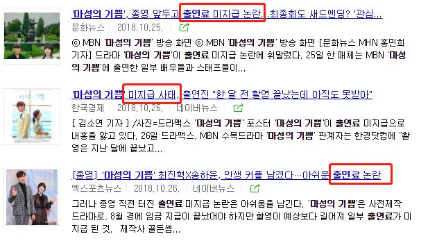 说是演员宋昰昀、李珠妍仍然没有从MBN《马成的喜悦》制作方获得出演费,据说这个电视剧出演费在出演前、拍摄途中和电视剧播出结束后分3次支付,但是宋昰昀、李珠妍3次都没能得到出演费。
