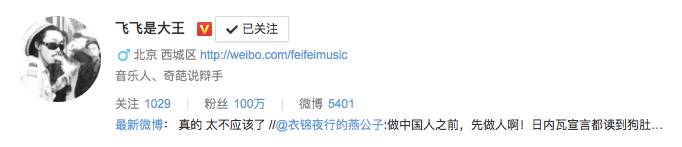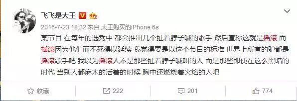 飞飞作为一个乐手更多居于幕后,按说并没有站到台前的歌手那么受人瞩目,但他在微博上的影响力和关注度都甩了一大票歌手,为什么?