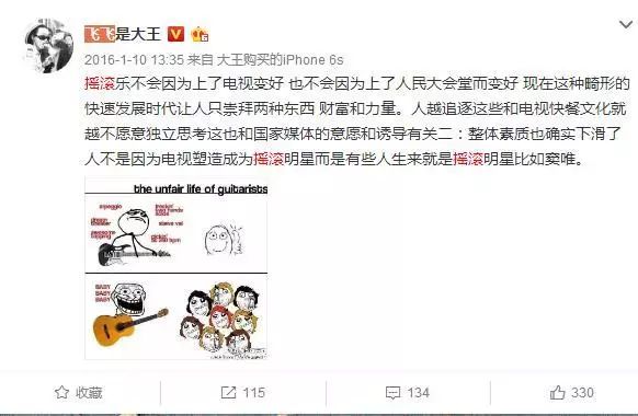 第一,他放下了一般摇滚明星狂拽酷炫、爱端架子的高冷形象,有观点就直接表达,遇到傻逼该怼就怼;