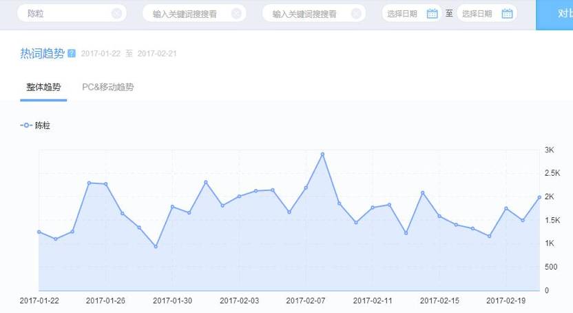 2017年2月15日,飞飞的热议指数去到最高峰值,大约10K。最近两天大概保持在2.5K左右。
