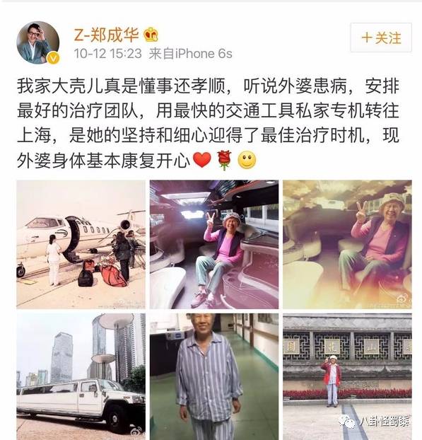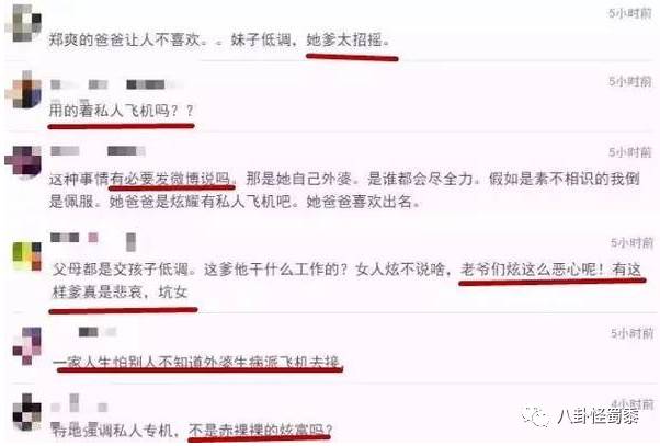 然后呢,在郑爽开微博前,爽爸就经常在自己的微博上发郑爽的动态和粉丝互动,却闹出了些新闻。比如他夸郑爽用私人飞机载着外婆去看病是孝顺,结果却被网友狠批是炫富。