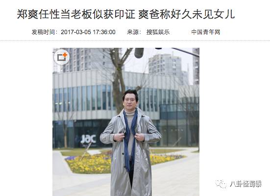 虽然大部分的人都是在去年的综艺节目《旋风孝子》中认识爽爸的,爽爸当时就凭借女儿各种热门话题红了一把,微博认证就迅速改成郑爽的爸爸。