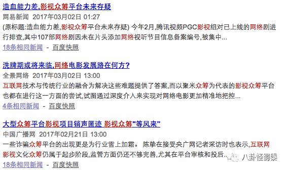 厉害了哦!还可以用这种方法,但怎么蜀黍之前听到的关于互联网影视作品做众筹的风险很大啊?随便搜搜新闻都是这种……