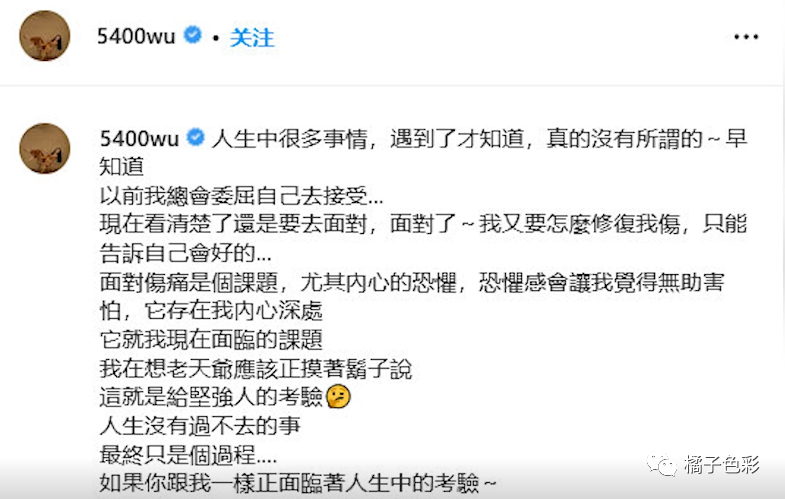 三月三十日,曹格妻子吴速玲在自己社交平台发文,人生中,很多事情遇到了才知道,真的没有所谓的。以前总会委屈自己去接受,现在看清楚了,还是要去面对,人生没有过不去的事。语言满是感慨,字里行间都充满着对生活的无助和对未来的失望。