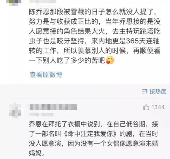 陈乔恩曾经有过一段被雪藏的日子,后来接了一部没人演的戏而大火,去主持玩跳塔吃虫子也没放弃过,这才有了今天。