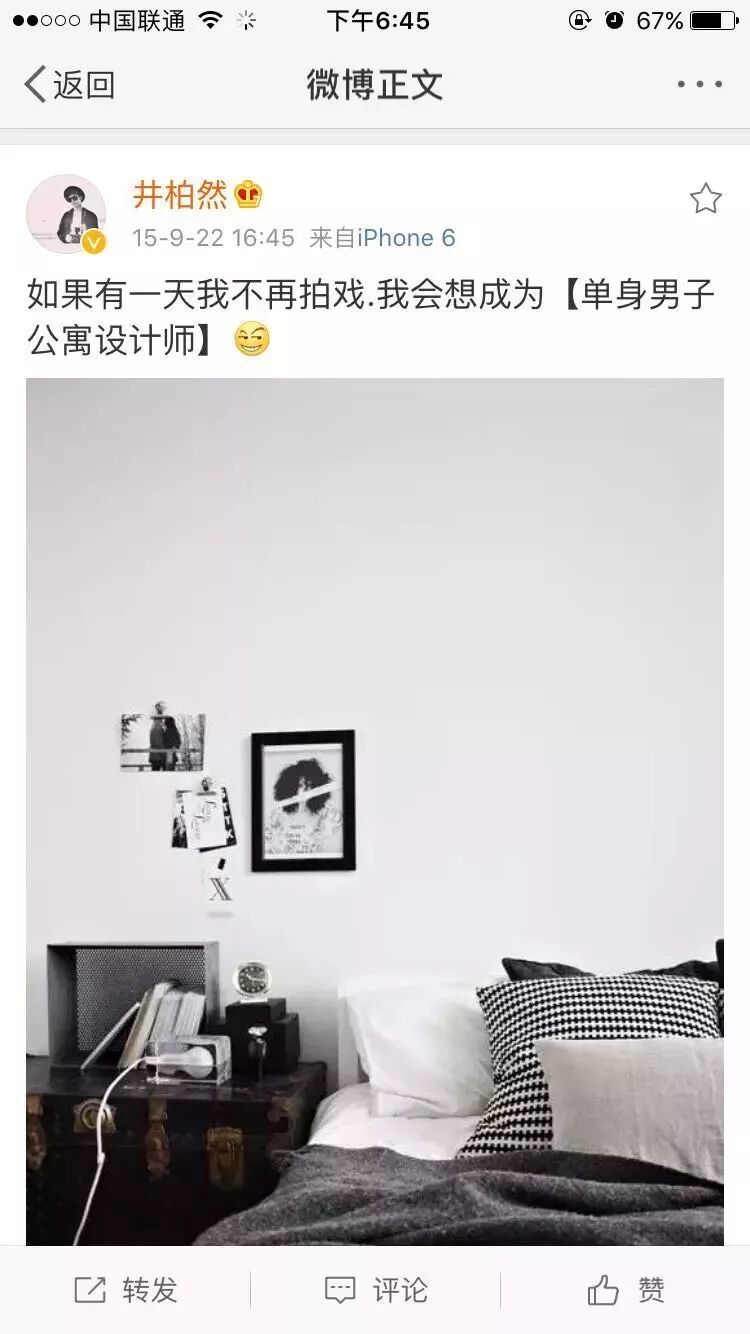 井柏然曾发微博表示“如果有一天我不再拍戏.我会想成为【单身男子公寓设计师】”,足见他对于家居的热爱。