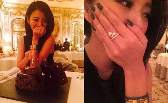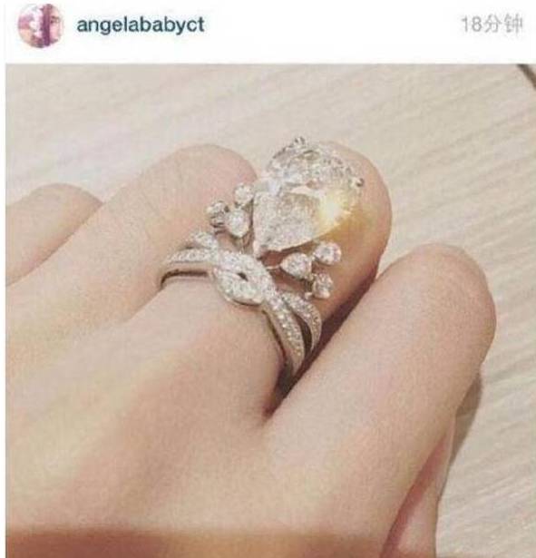baby结婚时,也在社交网上晒出了大钻戒,估价超千万。