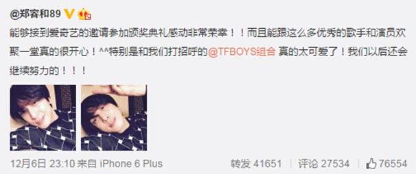 当然,对于郑容和来说,交朋友国籍不是问题,年龄也不是问题,不光80后的林俊杰,连00后的TFBOYS,郑容和都统统“搞定”。