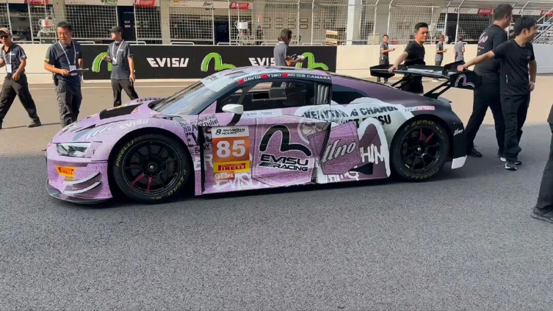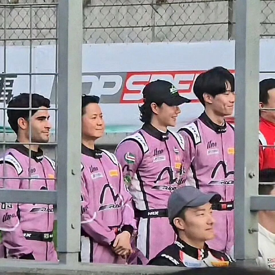 从巴黎回到上海,王一博回归85号赛车手,这次参与的8小时耐力赛,赛车换成粉紫色,队服更是小粉红,团队协作,四人粉亮登场。