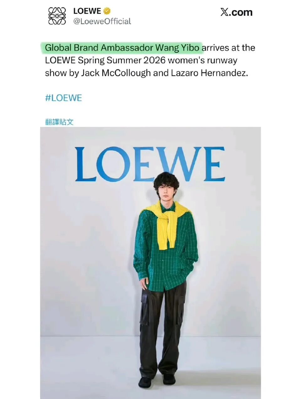 由此可以看出,王一博作为罗意威全球品牌代言人的地位!Loewe 如此的偏爱王一博,实际上是对他全球影响力的高度认可和肯定。
