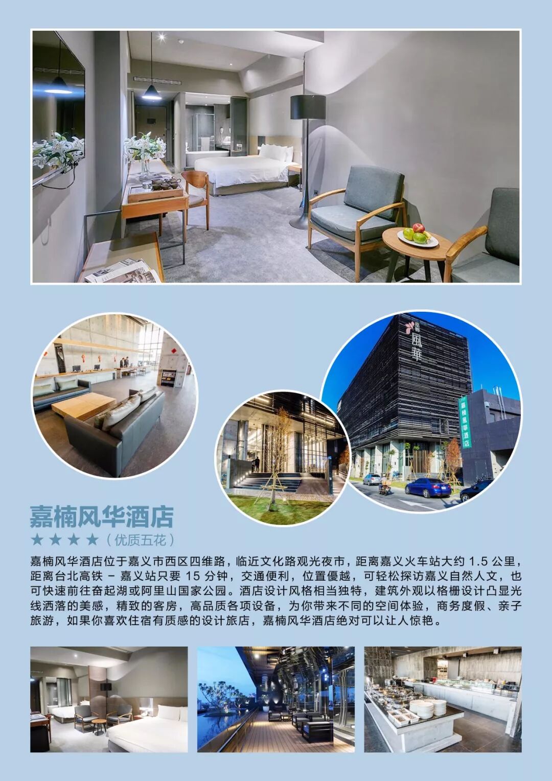 早餐后至【美妆店】自由选购,随后驱车前往埔里参观全台湾最雄伟壮观的佛教圣地【中台禅寺】,庄严又具现代感的大雄宝殿是全台甚至全世界都难得一见的,来这参观兼具洗涤心灵的功效。接着前往游览最让大陆游客耳熟能详的【日月潭国家风景区】。日月潭比杭州西湖大,四周连峰环绕。如果说西湖的淡妆浓抹水光潋滟,显得有些柔媚,日月潭则幽静绝尘,显得有些矜持。青山倒映、绿水荡漾,伴随晨钟暮鼓、山岚水雾,俨然人间仙境。日月潭之所以美丽,是因为四周一座座绿色的山峦象影,静静一湖碧水则像镜,湖光山色一年四季无穷变幻,就像传说中的仙境。潭中有一小岛远望好象一颗珠子,名珠子屿或光华岛,以岛为界,北半湖状如圆日,南半湖形如弯月,日月潭因此得名。日月潭西南有玄光寺和玄奘寺。玄光寺供奉玄奘法师的金身,上悬“民族法师”的匾额。1965年又建成【玄奘寺】,专门供奉玄奘灵骨。
