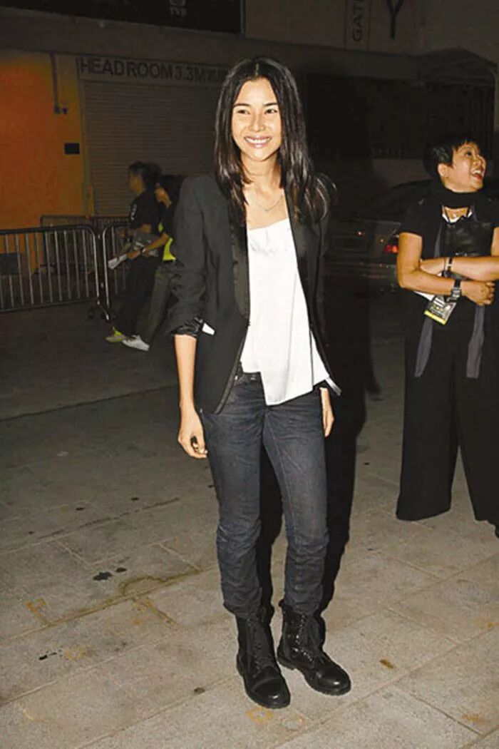 蒙嘉慧还是把头发扎起来的时候会好看一点,放下来的时候虽然说显得脸小了一点,但是皮肤比较暗淡,看上去就有点显老气了,尤其是这一身的黑色,所以然显得有些帅气,不过配上这样的发型却也是很显老了呀!