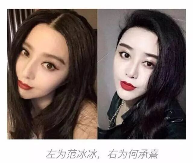 除了复制长相,连妆容和拍照方式都进行了模仿,打开微博还以为是范冰冰的小号