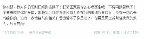 而韩雪也曾遇到过”男版杨丽娟“,2012年,韩雪曾在微博中愤怒声讨某粉丝的过激行为。