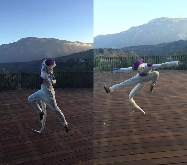 小甜甜布兰妮还曾在社交网站上晒出过一只惟妙惟肖的弗利萨大王蹦蹦跳跳的照片,这只身姿矫健的弗利萨也是她10岁的小儿子肖恩COS的。