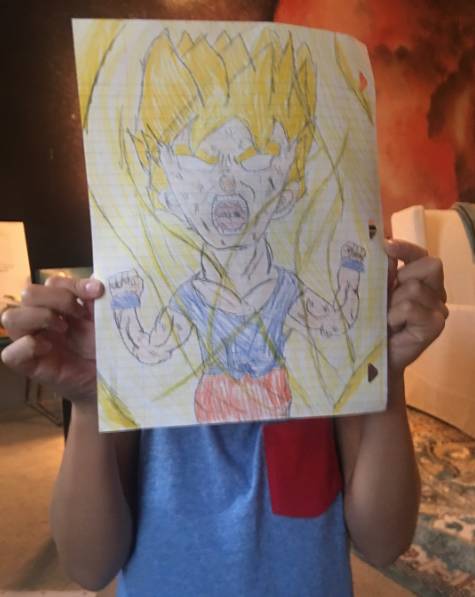 最近布兰妮又在社交网站上公开了儿子的新画作,其中一幅是《龙珠》中的悟空↓