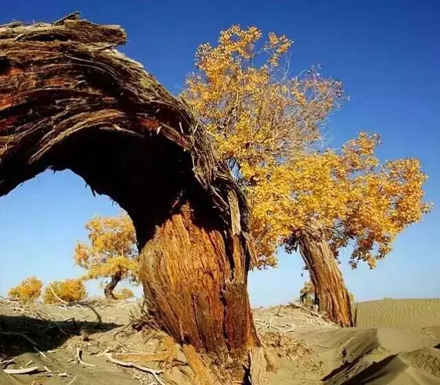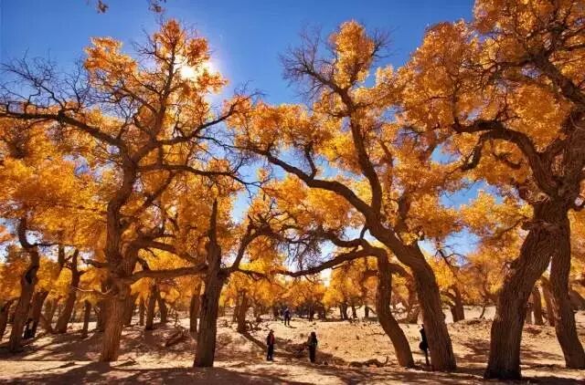 内蒙古阿拉善盟额济纳旗胡杨林景区迎来一年中最美的时刻,大片的胡杨呈现出醉人的金黄色,游人行走在林间,犹如置身于童话世界。每年十月中旬到十一月中旬是观看额济纳旗胡杨林的最佳时节,每到这个时候,大批游人纷至沓来,“金秋胡杨”已成为当地旅游宣传的一张“黄金名片”。喜欢的朋友请收藏或分给更多人欣赏这片自然美景吧~