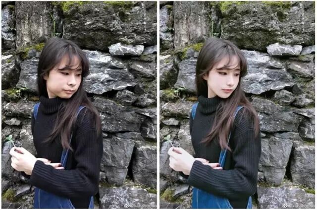 另一个“网红脸”修图,刚才说过,有“滤镜感”的图都是可疑的