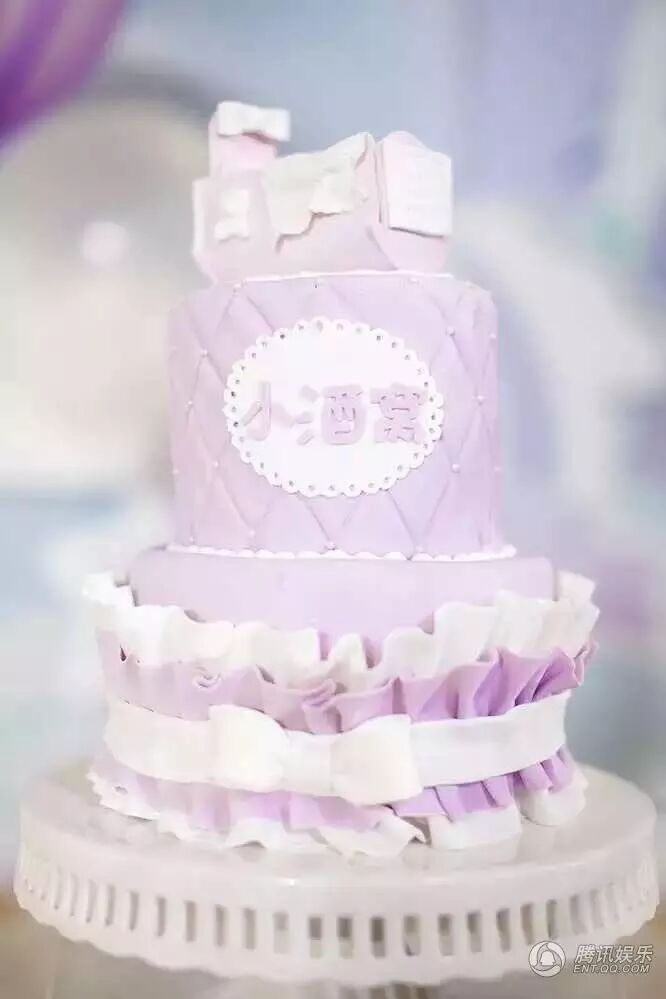 从现场照片来看,满月宴现场以淡紫色和白色为主题,背景板上写着“陪你看世界”,现场甜点区也被专门制作成了“小酒窝”专属,淡紫色的生日蛋糕、小熊饼干以及紫色的饮料等,都将现场装点得温馨浪漫。