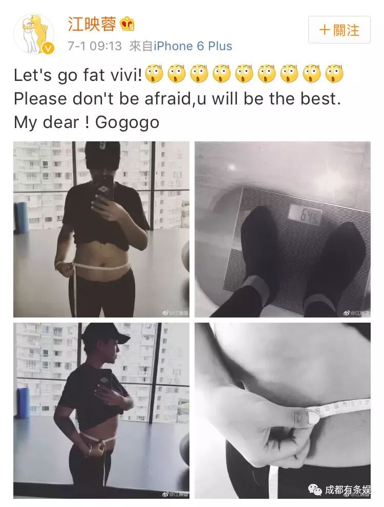 7月份的时候,江映蓉突然在微博上下军令状,说自己要减肥了!还狠心晒出了自己的体重和腰围!