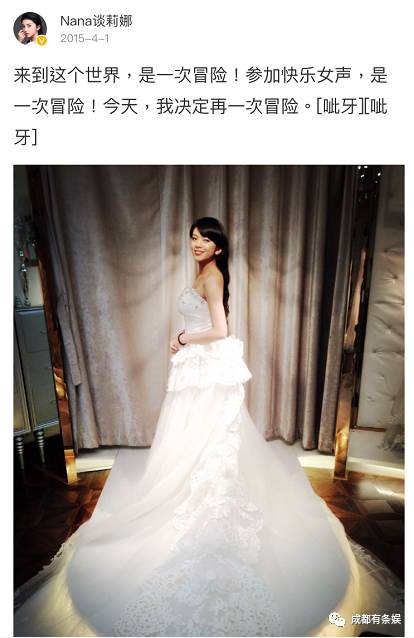 在2015年愚人节的时候,在微博宣布自己要和相恋2年的圈外男友结婚了,并晒出身披婚纱的照片。