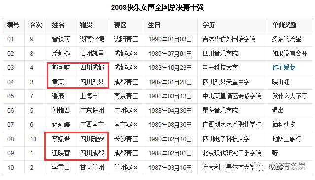 回顾09年的全国前十强,不知道大家还记得她们的名字么?其中四位都是川妹子,全国前三名有两位!