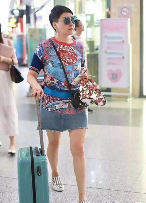 花纹的衣服真的非常的符合她现在这个年龄了不会显得特别的张扬了,下半身搭配的是一条浅蓝色的半身裙那是牛仔的款式非常的可爱。看起来她还是一个非常时髦的人呢因为穿搭还是不错的。