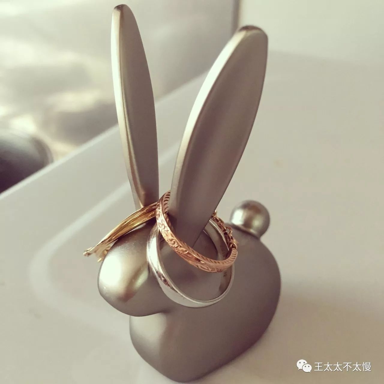 我平时会把戒指放在首饰盒里,但这样的缺点就是有时上班时间匆忙,来不及打开首饰盒取戒指,挂在兔子耳朵上,取放更方便了,带戒指的频率变高了一点~