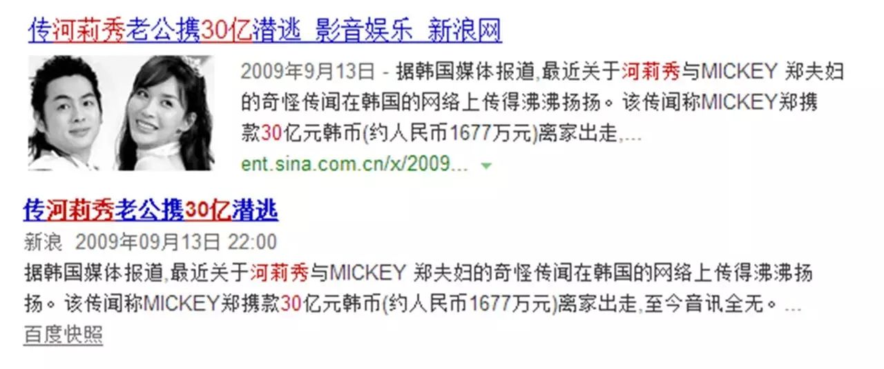 然而,网络上有关两人的不和说却层出不穷。传言,河莉秀结婚一年多时,韩网曾传出消息称,河莉秀惨遭郑英镇诈骗,被卷走30亿韩元巨款潜逃。