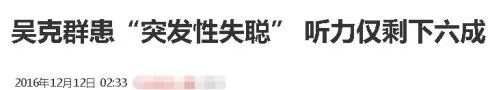 2016年,歌星吴克群因为压力过大,导致左耳突发听损,因为工作的关系并没有太在意,后来因为常常耳鸣而去医院时已错过黄金治疗期,可能再也无法恢复左耳听力。随后吴克群安慰粉丝说不会退出演艺圈,会继续努力创作更好的作品。