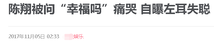 据了解,陈翔出道早期,在参加快乐男声比赛期间因鼻炎、过度疲劳和压力过大等原因导致咽鼓管发炎,最终导致左耳重度听力损失。