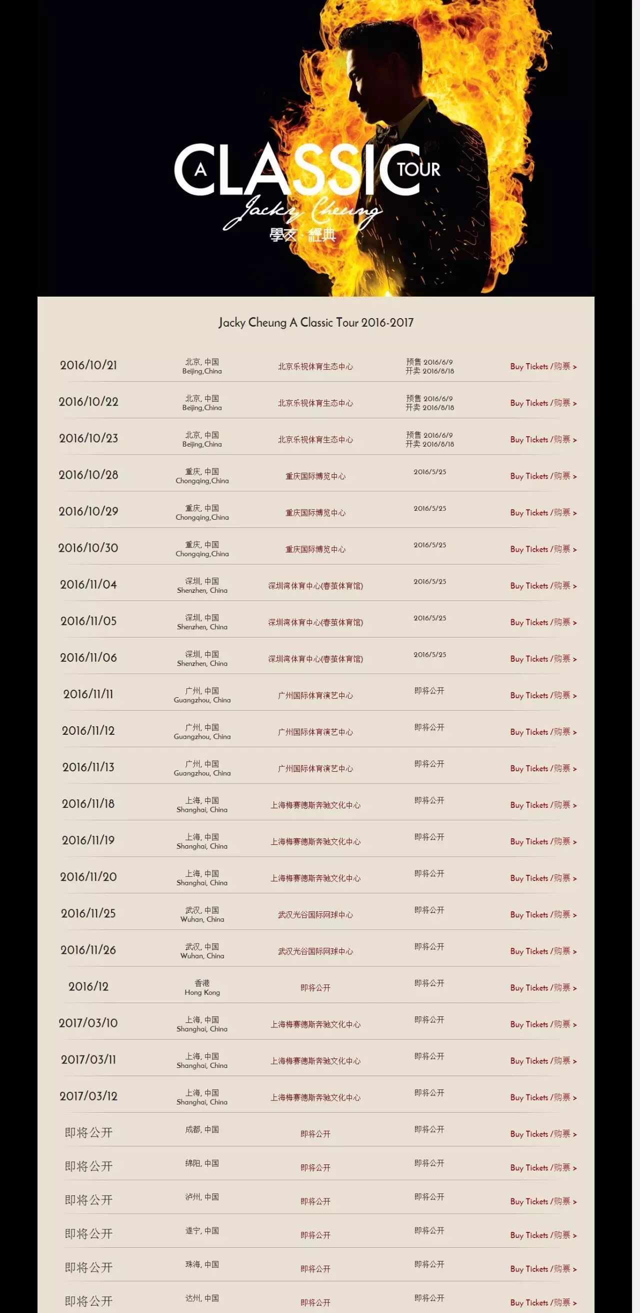 昨天有消息爆料公布张学友2016A CLASSIC TOUR 学友·经典 世界巡回演唱会的一批城市,其中万州赫然在列。今天(5.18)下午,张学友在北京召开了本次巡演的发布会。