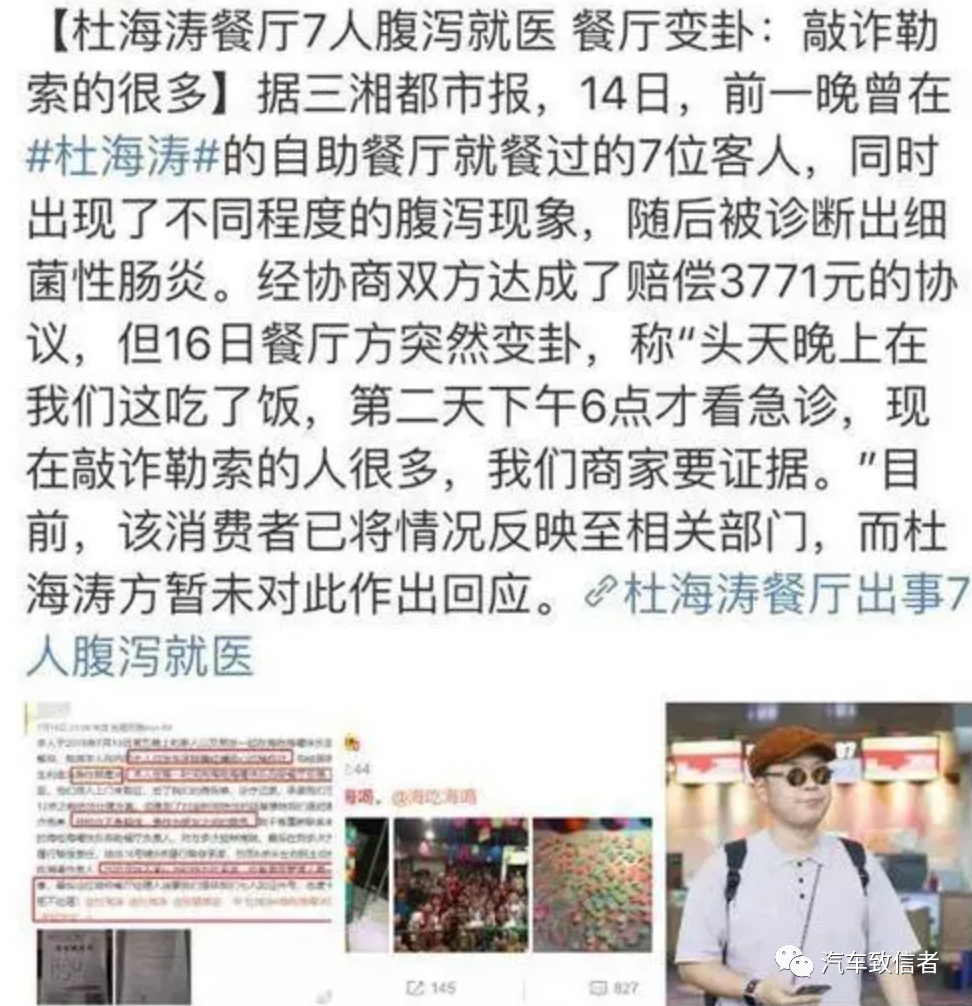 诸如此类的还有在杜海涛开设的餐厅当中,多人发生腹泻症状,被送往医院急救。