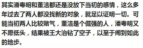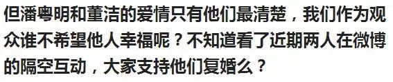 网友:在一起算了,反正都是单着的,有什么回不了头的。离婚后董洁把关于潘粤明的微博删得一干二净,而潘粤明却一条都没删,现在去他的微博搜“小D”(董洁)都还有30多条。
