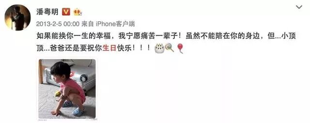 潘粤明现在每年也都会在顶顶的生日发微博,从13年到17年,每年都不会少。