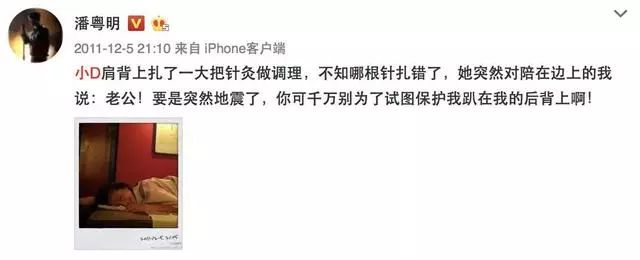 意外的是近来两人在微博上,频频更新自己的动态,而且还有内容上隔空互动起来了。比如潘粤明在微博上声称:自己家的狗狗生病了有点难过。