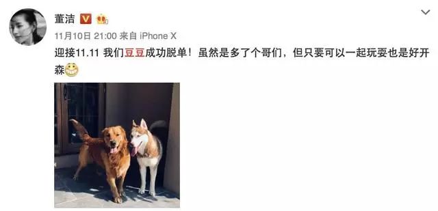 而这种私生活按理说也是很正常的,但不正常的却是董洁在第二天,也发了一条关于狗狗的微博:而内容却是直戳人心的说她家的狗狗脱单了。