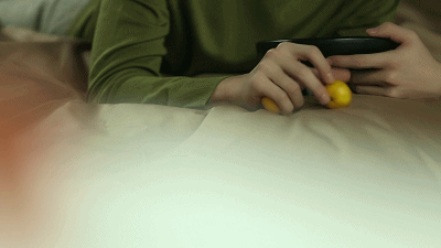 所以拍摄时,当他裹着灰色法兰绒袍子,在灰色床上跳跃,倚在枕头读书——怎么少得了一套暖色系的床品!这个颜色一言难尽,有点点杨梅红石榴红,又有点点南瓜色豆沙色……