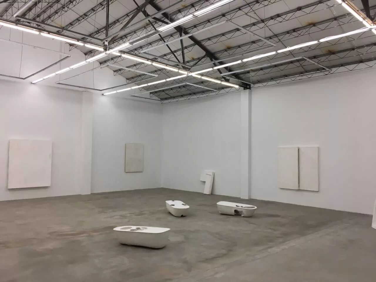水泥玻璃屋,是建筑师张永和的艺术作品,名为“垂直玻璃”;而蓝色斜顶屋,位于艾可画廊内。当时画廊正在进行艺术家苏畅的个展《呼吸》。简直不能相信,画廊和艺术家本人,竟然爽快地同意搭建井宝的房间。而斜顶屋外的白色雕塑,赋予整个空间超现实色彩。