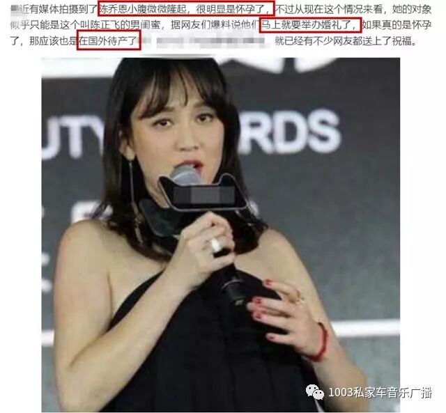 陈乔恩已经算是一位大龄剩女了,所以媒体一直很关心陈乔恩的感情生活。近日,有网友爆料陈乔恩在国外待产,和男友将奉子成婚。并且还晒出了陈乔恩的近照,照片中陈乔恩小腹微微隆起,一副孕妇的状态。该网友爆料陈乔恩的结婚对象是多年的男闺蜜陈正飞。