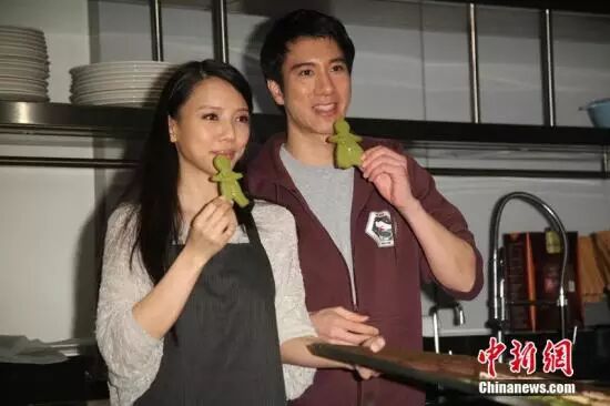 2014年1月26日,台北,王力宏和爱妻携手做甜点,姜饼人写名字大秀恩爱。