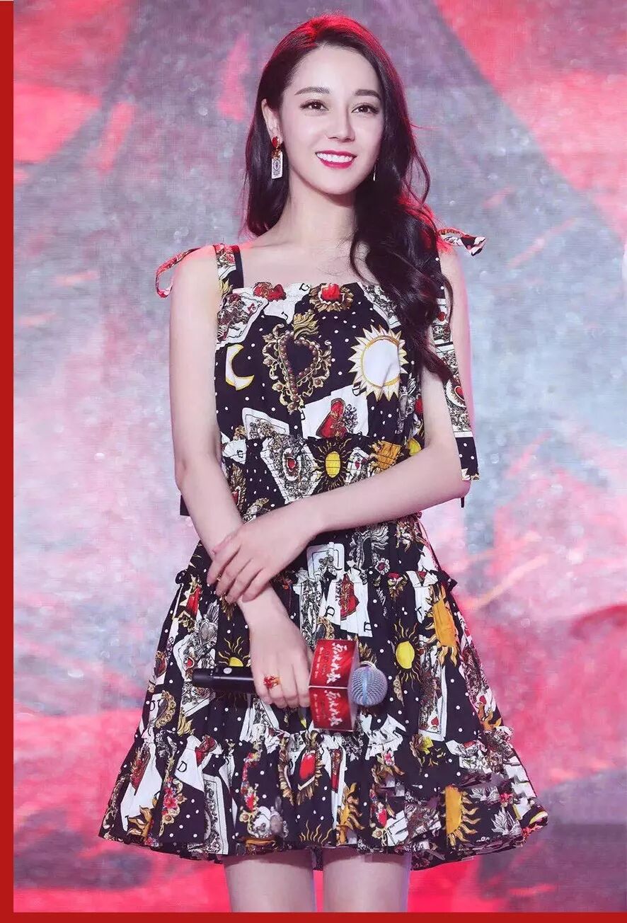 热巴身上这款印花连衣短裙也是夏天必备,薄如蝉翼的雪纺布料+复古的印花,上身好看又舒适。