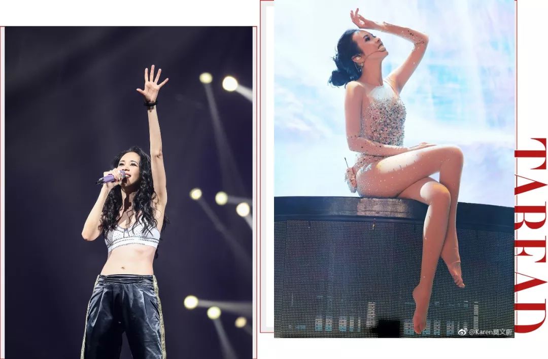 除了在生活上特立独行之外,Karen在舞台上的表现力也一直是另类和鲜明的,透视装、翘臀蜂腰、爬钢琴……让我等观众叹为观止。