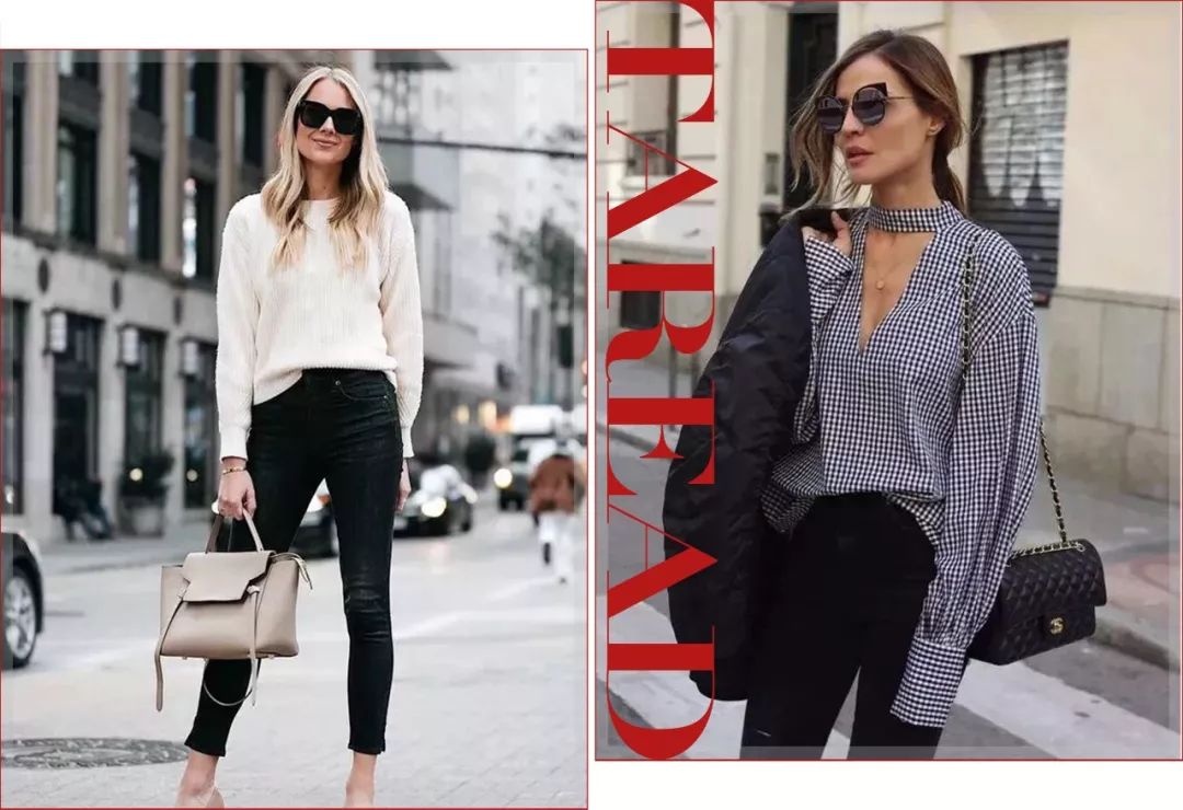 至于腿型好看的妹子们在选择裤子上就比较随意了,也可以选着紧身小脚裤,同样利用塞衣角的方式有效打造腰线,来拉长腿部比例。