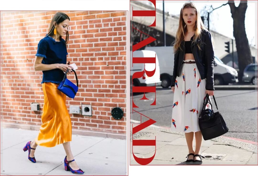 露脚踝+中长裙,在是视觉上一点都不会压个头,无论是带跟还是平底都能很好驾驭。