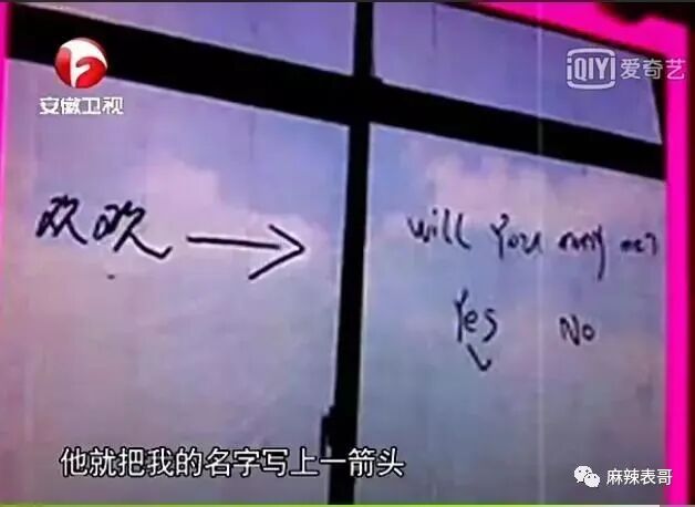 到了晚上等董璇睡了,高云翔就在玻璃上写“will you marry me?”