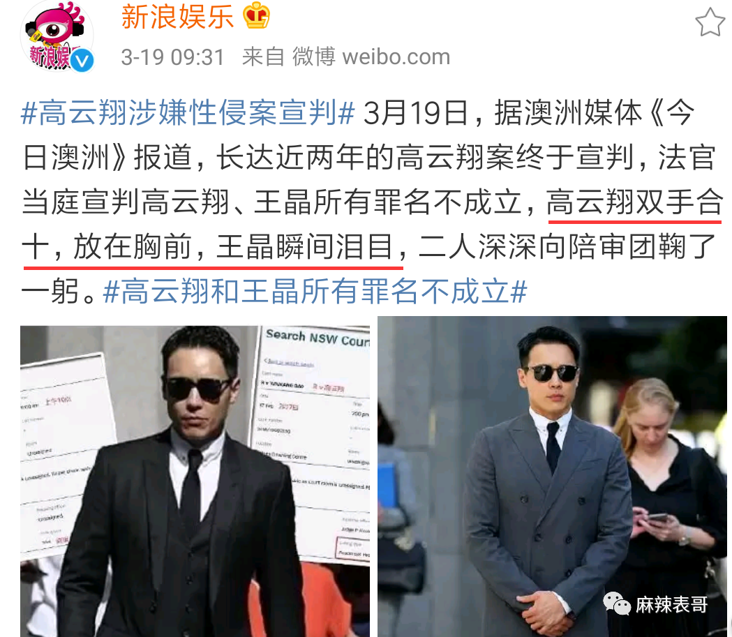 前一阵子,高云翔涉嫌XQ的案子,最终宣判无罪。他和王晶(不是香港导演王晶)均无罪获释,21日高云翔就回国了。