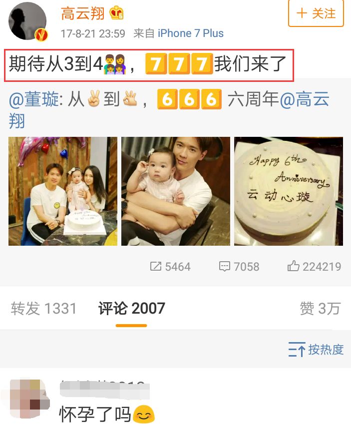 到了7周年的时候,确确实实有传出二胎的迹象。