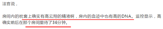 此外,枕套上有高云翔的精液,血迹中也有高的DNA,高在房间待了有36分钟。