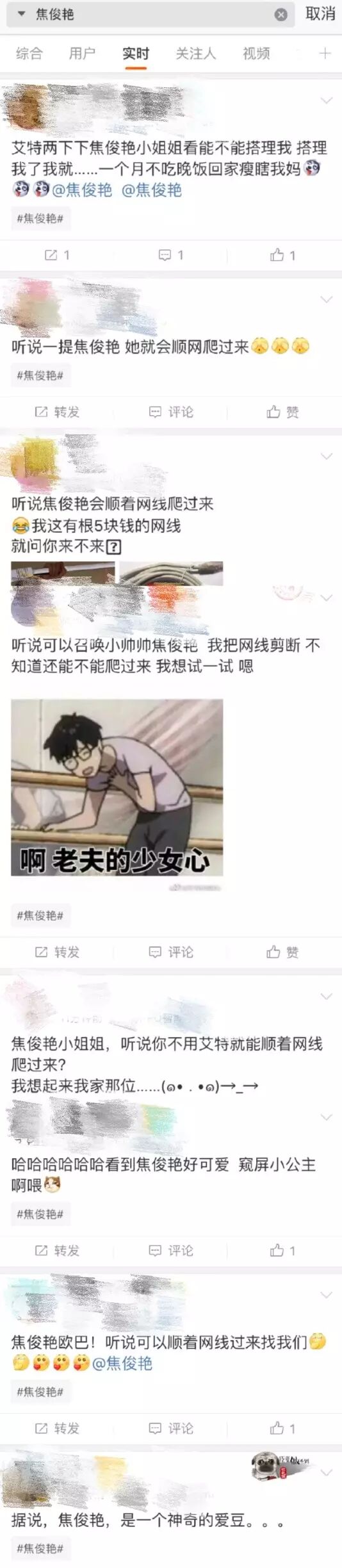 现在在微博上搜“焦俊艳”,出来的全是召唤这位窥屏小公主的。